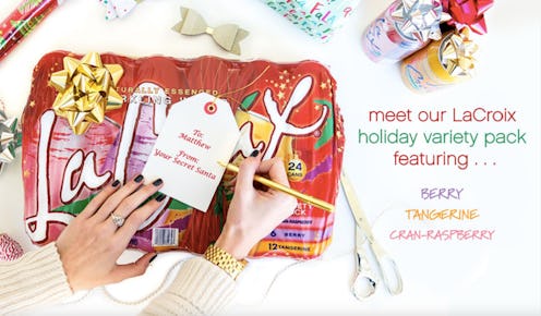While we were all lulled into a mashed potato slumber over the last week of Thanksgiving shenanigans, LaCroix quietly dropped what may just be the biggest news of the holiday season. Fellow drinkers of what I have affectionately dubbed "millennial juice," take note: a LaCroix holiday variety pack just hit shelves, making your fave sparkly beverage even more festive than ever. Looks like Santa's going to shimmy down a chimney to cookies and LaCroix this year, y'all.