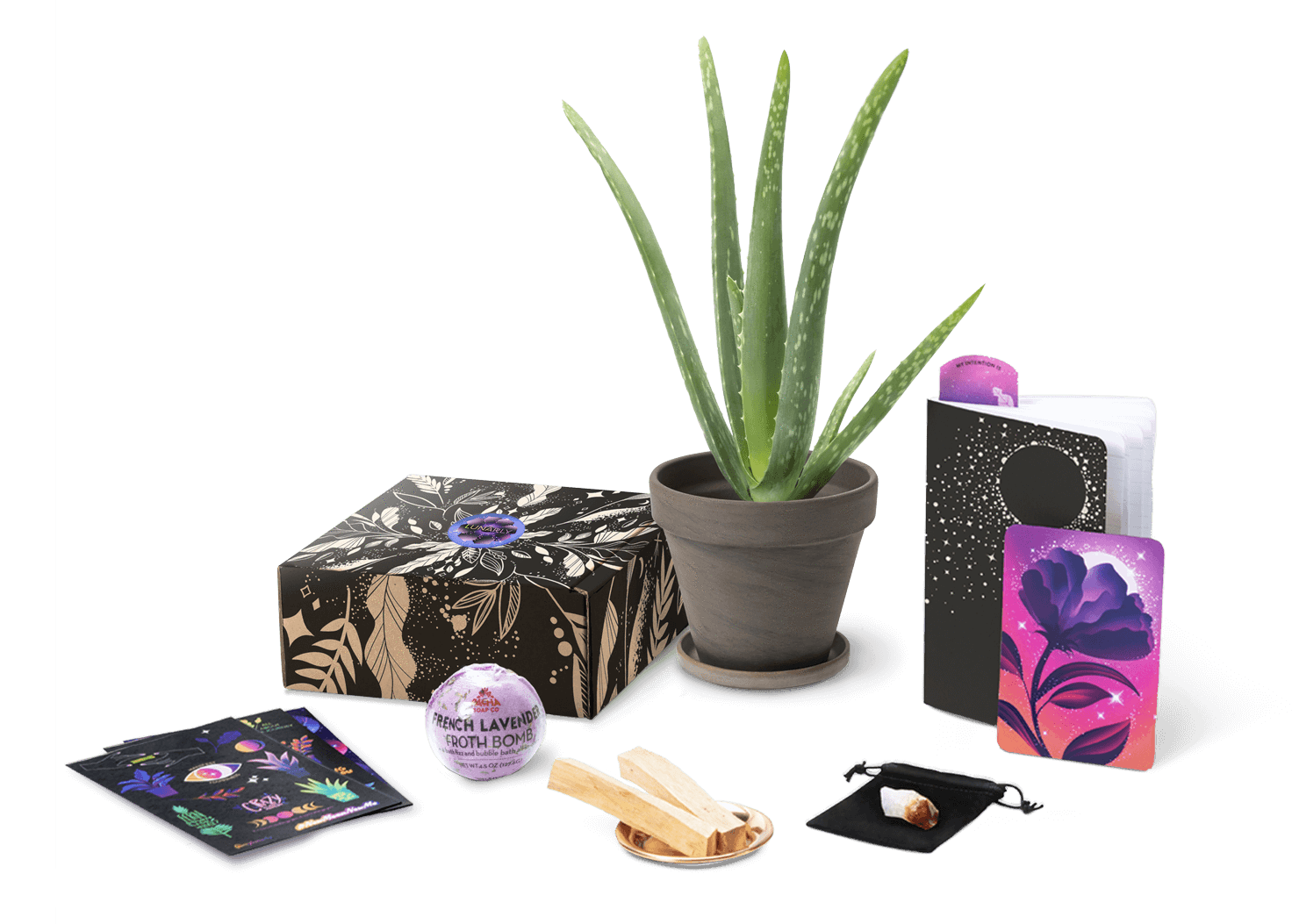 Self-care has been an important object of discussion in the past few years, and it's something that's super subjective depending on your needs and personality type. It comes in a lot of different forms — whether that be a relaxing spa night at home, a mental health day to recharge from your busy schedule, or a new skincare routine to rejuvenate your pores and give yourself some TLC. You've also probably seen the rise in personalized subscription packages that you can get delivered right to your doorstep on a weekly or monthly basis. Most of them are usually skincare, makeup, or food-related products, but there's a new one on the horizon: a lunar-themed monthly self-care subscription box.