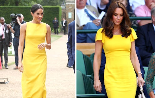 A week or so later, Kate Middleton stepped out in a remarkably similar style. The royal hit up Wimbledon in a Dolce & Gabbana dress in exactly the same happiness-inducing shade. Yellow is a colour the Duchess of Cambridge has worn several times in the past including a very subtle shade to Meghan and Harry's wedding. (Note that Amal Clooney also chose head-to-toe yellow for the royal wedding of the year, because Amal always knows what's up.)
