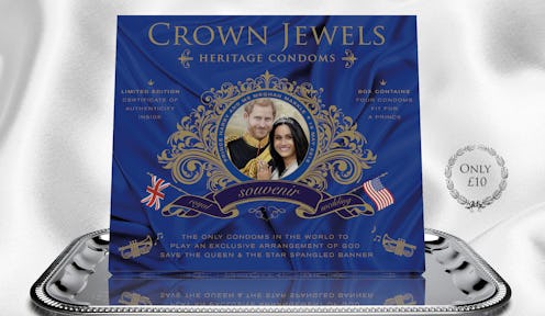 Since Prince Harry and Meghan Markle became a thing, the world has been totally consumed by their relationship. We've tried to copy Markle's wardrobe choices — which typically sell out online the nanosecond she's seen wearing them. We've dissected what wedding dress she might wear (something sophisticated and simple, obvi) and the flavor cake they might eat (banana? fruitcake? who knows...). We've gone through the many royal wedding traditions and wondered if the queen might make an exception and let them do the chicken dance anyway. The crowds have spoken, and they say, "Give us royals or give us death!" Weren't royal condoms the next logical step in our obsession? I can't think of a better way to not get pregnant.