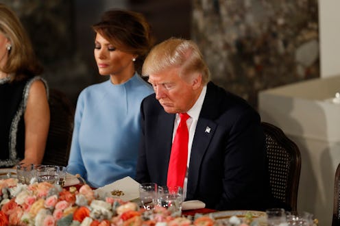 While most people were watching the New England Patriots take on the Atlanta Falcons from the comfort of their living rooms while wearing jeans and T-shirts, a suit-and-tie-clad President Donald Trump hosted a Super Bowl watch party in a ballroom at Trump International Golf Club in West Palm Beach, Florida. Although the event was meant to be a party (the name is "watch party," after all), photos of the soiree sparked intense debate over how much fun First Lady Melania Trump was having while watching the Super Bowl.