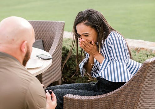 Every month, Johnson put the $150 in a "ring account," not knowing whether he would use it in a year, two years, or even a decade. Apparently, it paid off — literally — because this ring is stunning, and Williams' reaction was epic. She and her fiancé posted photos of the exact moment that Johnson popped the question on their Instagram accounts.