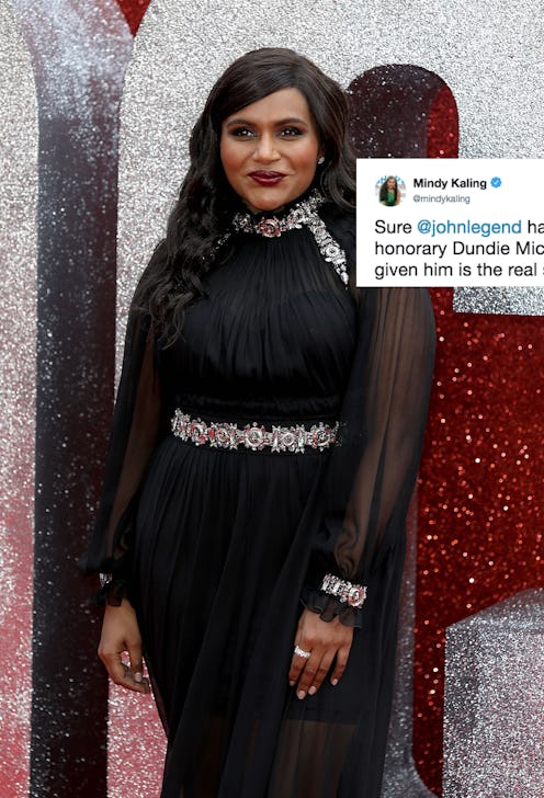 "You have won a tiny Dundie!" On Monday, Mindy Kaling reacted to John Legend's EGOT by referencing The Office, the beloved NBC comedy she once starred in as Kelly Kapoor, alongside Steve Carell's Michael Scott. On Sunday night, Legend made history at the 2018 Creative Arts Emmy Awards after he won an Emmy, which earned him his EGOT. He's the first black man to achieve the honor. Of course, Kaling couldn't help but tweet about Legend's accomplishment, and all while imagining the Dunder Mifflin manager giving an even bigger award to the singer.