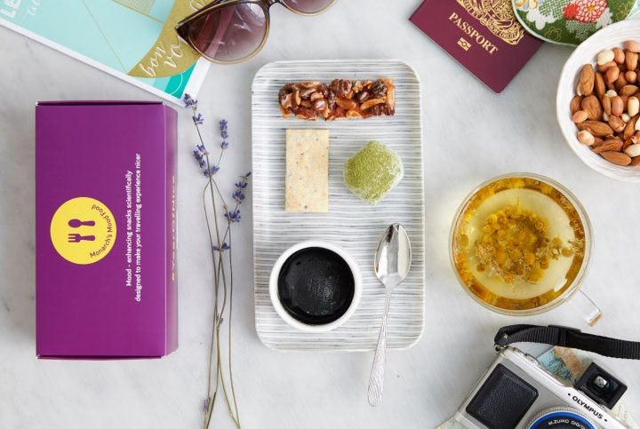 Dubbed the "Monarch Mood Food Box," the contents were chosen based on research by Oxford professor and food psychologist Charles Spence and selected by top chef Jozef Youssef of Kitchen Theory to "get travelers in the holiday mood, enhance happiness, relaxation and wellbeing."