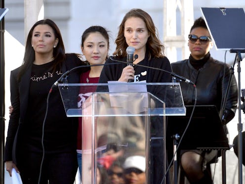 The actor took the stage at the Los Angeles march alongside other actors and activists, including Eva Longoria and Constance Wu. Portman spoke to the tens of thousands in the crowd, sharing a story about her early career in Hollywood. After appearing in Léon: The Professional at just 12 years old, she was bombarded by inappropriate and sexualizing behavior from journalists, radio stations, and the general public. The reception made her feel incredibly unsafe, and led her to limit her personal and professional choices.