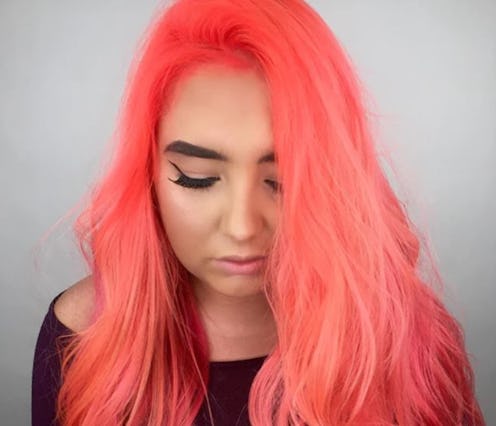 "She started by dyeing a customer's virgin hair platinum blond, and then followed up by mixing two shades from Pulp Riot's Neon Electric line — four parts Candy (a bright pink) and one part Lava (a striking orange). Once processed and rinsed with icy-cold water, her client was left with utterly electrifying strands," PopSugar reported. The end result was an eye-popping hue that would make a highlighter look subdued.