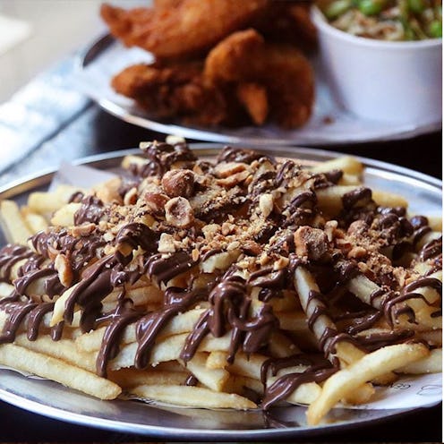 As a brief history, this isn't anything new. In places like East Asia, fast food chains like Lotteria in Japan have launched "dipping fries," aka fries with chocolate dipping sauce, in the past. If you have even more of sweet tooth, there are other options à la french fries that are, at the very least, intriguing. Take sweet potato fries, Nutella, and peanut butter! This is a combination that might spark your interest if you're already salivating.