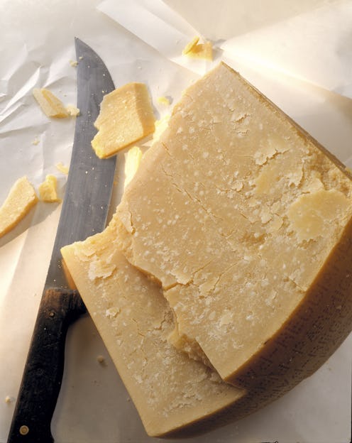 Whether shaved on top of a heaping bowl of pesto or eaten by the block, Parmigiano-Reggiano, the sharp, nutty, oh so flavorful Italian import is a delicious addition to any meal — unfortunately for vegetarians, it's off-limits. That's right: Parmesan cheese is not vegetarian as one of it's necessary ingredients is calf rennet. This shocking information is not a dark secret kept hidden from us by "Big Parma" — it's, actually, a little publicized fact about Parmigiano-Reggiano that is finally getting its time in the spotlight. As the food industry becomes more accommodating when it comes to dietary restrictions and preferences, we will be less and less likely to see dishes with certain popular European cheeses miss-marked vegetarian. So dear Veggies, prepare for heartbreak.