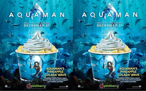 A pineapple and coconut frozen yogurt paired with a movie about the ocean seems more like something that should be happening in August rather than in November and December, but the movie was supposed to be released a little earlier. Aquaman originally had an October 5 release date, according to Deadline, but it was pushed back. That at least would have been a little less strange feeling than a Christmas weekend release. But, since you can't really pair a movie about an aquatic superhero as seamlessly with, say, an Advent calendar, as you can with frozen yogurt, the Pinkberry collab still adds up. If you live somewhere cold, just make sure you dress warmly when you enjoy your cold dessert and water-themed film.