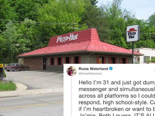 Waterland’s tweets were met from consoling messages from her followers, each offering support, condolences, and their own personal cure for heartbreak. One of those messages was from Pizza Hut’s official Twitter account.