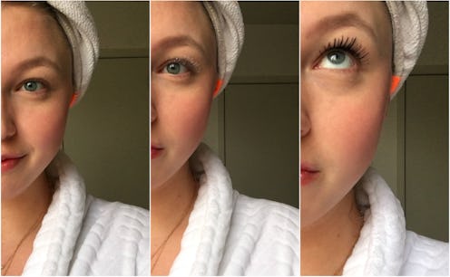 The primer, which goes on white, instantly lengthens your lashes. It's noticeable immediately, which is oddly satisfying — you don't have to wait to see results. Above you can see what my right lashes look like before and after the primer. Like I said, it's a game-changer.
