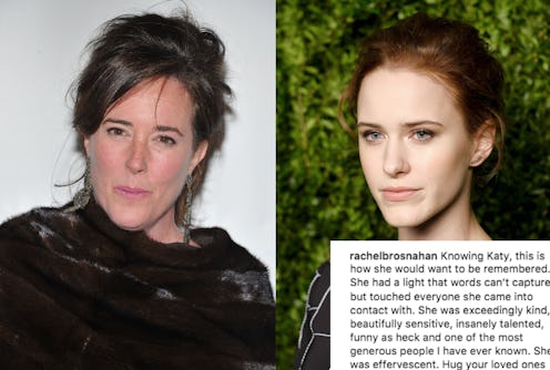 The world is still mourning the death of the iconic designer, but Rachel Brosnahan's tribute to Kate Spade will bring a little light back into the darkness. Many fans may not have been aware, but the Marvelous Mrs. Maisel actor is actually the niece of the late Spade, who reportedly died by suicide on Tuesday, and the younger woman honored the spirit of her late aunt's life with a touching Instagram post on Wednesday.