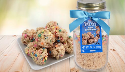 Some years ago, a culinary genius realized a simple cereal could be transformed into a sweet, crunchy, airy snack. The Rice Krispies treat is a school bake sale favorite, but is truly deserving off much more praise. Chances are you've had a fair share of pre-made treats outfitted in their recognizable shiny turquoise wrappers. But, really, you should have been making them yourself all along; it's amazingly simple to do. The process just got easier and more colorful thanks to Rice Krispies Treats Pastel Confetti Bites mix that comes in a jar.