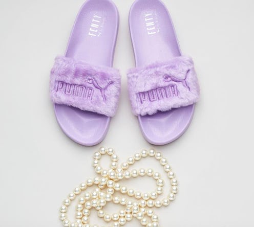 The purple fur Puma Fenty Slides by Rihanna arrive on Thursday, Jul. 13 at 10 a.m. ET/7 a.m. PT, which is standard for Puma x Rihanna drops. The luxe slides will be available via the Puma site and Puma retailers.