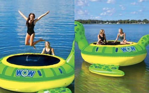 You can choose between a giant duck or a giant turtle to leap into the lake from. The WOW Novelty Water Bouncer costs $299.98 and both styles are available online. However, the duck bouncer is also available in your local Sam's Club. Don't be concerned about floating away. The trampolines come equipped with an anchor system so you can bounce and dive all day long. Boarding the bouncer couldn't be easier or cuter. Just climb up on the flippers. They literally lend a "hand".
