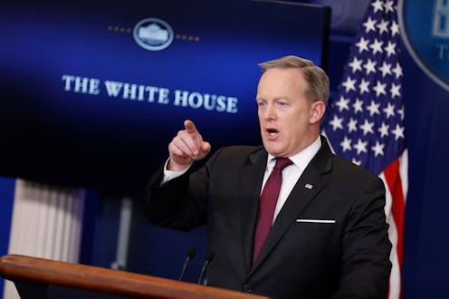 Frustrated that information discussed in a communication staff meeting last week had been leaked to the media, Spicer reportedly went into full-blown jealous lover mode. According to a POLITICO report published on Sunday, the White House press secretary called another meeting with the same staffers. Spicer then allegedly demanded staffers surrender whatever phones and electronic devices they had on them at the time for a random "phone check" reportedly meant to suss out any potential leak culprits. Checks were allegedly done on both staffers' personal and government-issued devices and was overseen by White House lawyers, POLITICO's sources claimed. Bustle has reached out to the White House for comment.