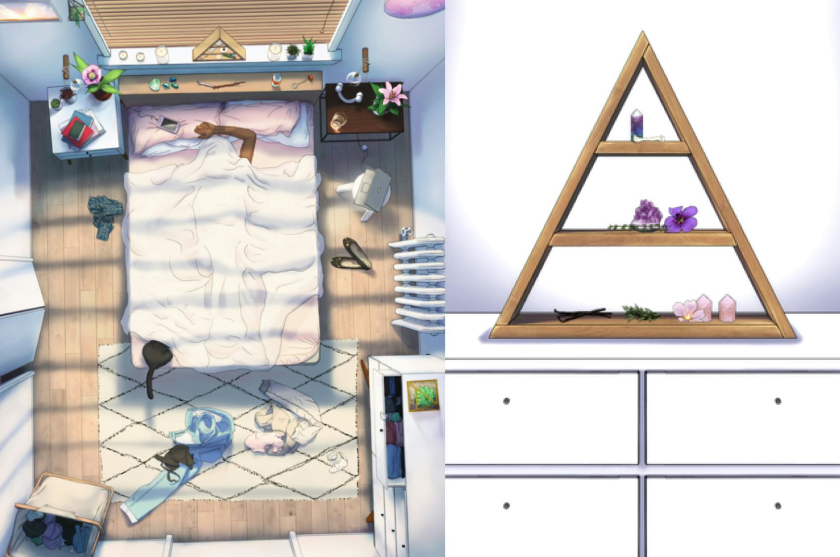 Unlike traditional mobile video games that up the challenge as you advance, #SelfCare games “begin disorderly and awkward, and become more orderly and satisfying,” as you progress, according to the recent press release. You can personalize your virtual self-care sanctuary with “unique additions contributed by guest artists working in themes of self-care, updating your space to reflect the evolution of your goals and outlook.” The more time you spend on #SelfCare, the more tasks and options you unlock to expand your self-care practice. You can awaken your dozing cat, do a simple tarot card reading, or water a plant. "It’s your safe, comfortable space where you give yourself permission to feel better,” the press release reads.