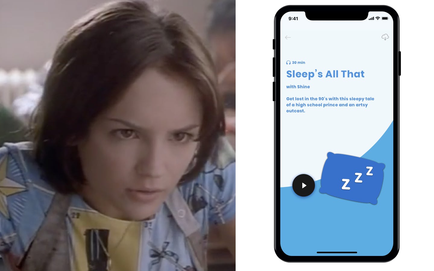 Remember when you were a teenager, and you’d plug in some cheesy rom-com just 'cause you were bored and knew you’d probably just fall asleep to it? Well, daily self-care app Shine is channeling that ‘90s movie nostalgia with new Sleep Stories that lull you to sleep with retellings of those same movies you’ve seen like a bajillion times. The new category of in-app audio tracks launches on Oct. 30 and includes favorites like She’s All That, Clueless, and Love and Basketball.