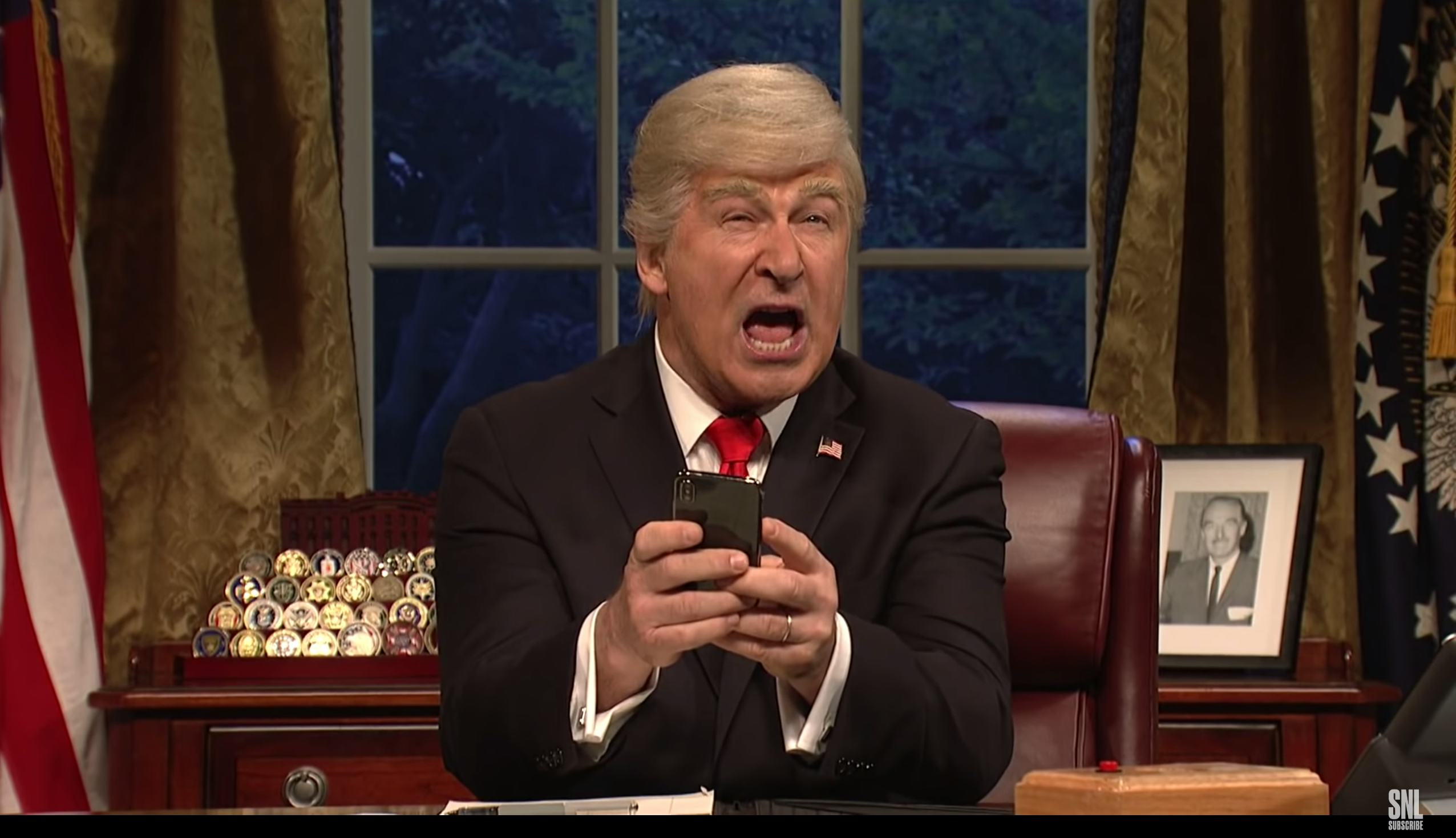 "We're going to black out everything except for the words 'no' and 'collusion,'" Baldwin's Trump said, adding that Mueller's investigation would be "the only thing I will talk about for the next four years."