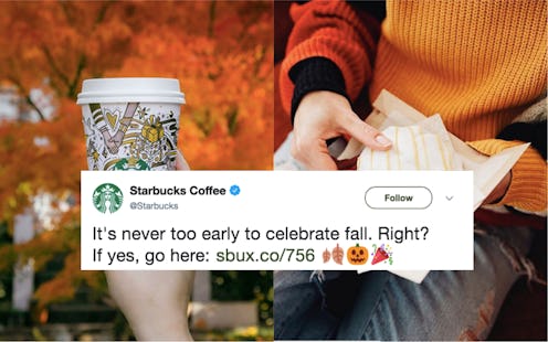 Starbucks quietly tweeted about the new group on Aug. 3, with an autumnally-themed animated video so cute I almost didn't notice I nearly broke my thumb enthusiastically clicking into the link. "It's never too early to celebrate fall. Right? If yes, go here," reads the tweet — which then leads users to a Facebook group you can request to join. Of course, first you have to prove your allegiance to the season (and that you're, y'know, not a bot); a question will prompt you to answer which is better, Autumn or Fall. Only after you pass this test will you be granted entry into this glorious pumpkin-paloooza, where you and fellow fall fanatics can gab about crunchy leaves and three-wick candles in PEACE.