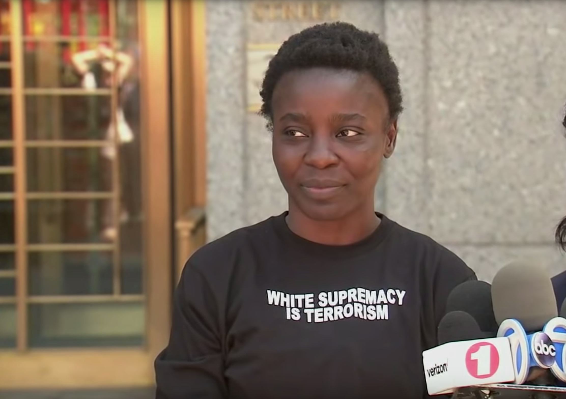 "Trump has wrecked this country apart," Okoumou continued in her speech outside the courthouse. "I can say a lot of things about this monster, but I will stop at this: His draconian zero-tolerance policy on immigration has to go."