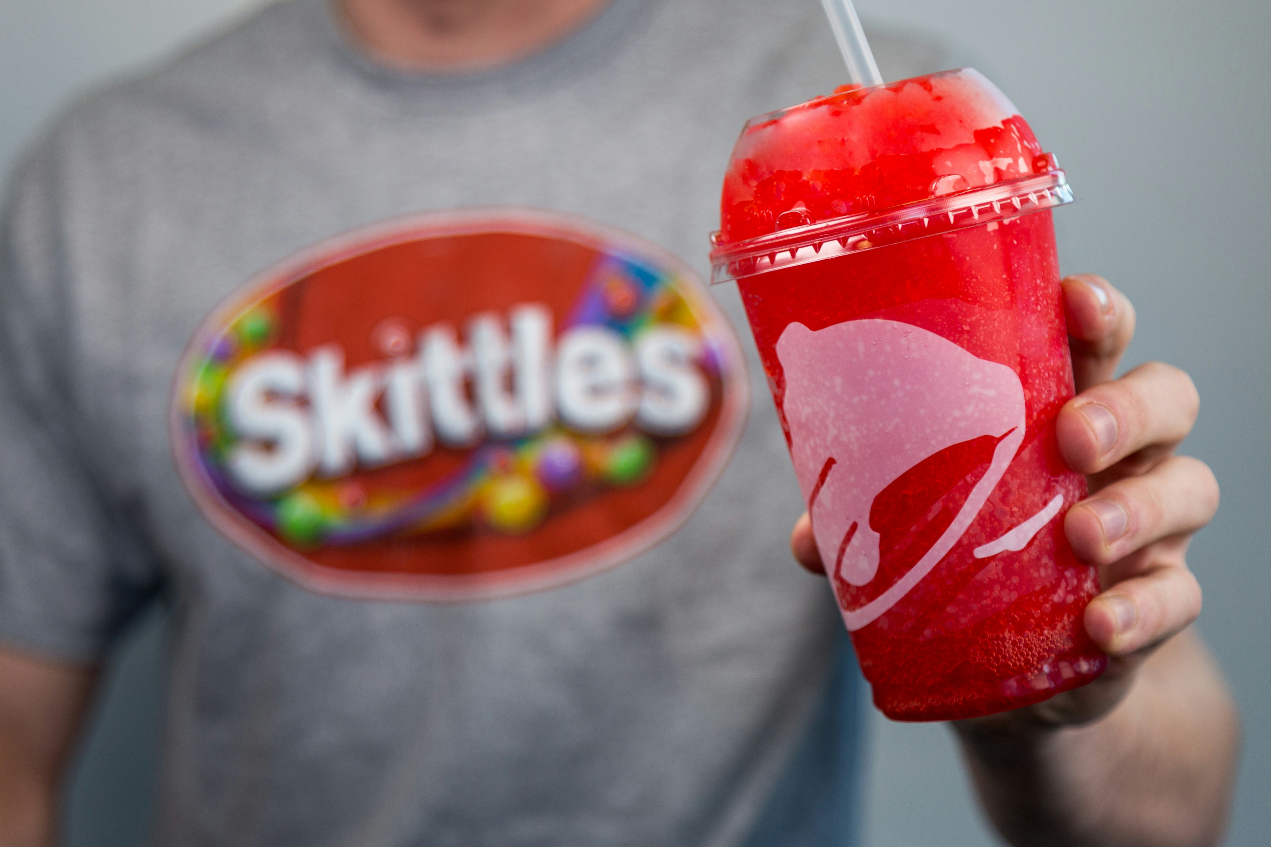 My suggestion? Get the best of both worlds. Grab some Sweet Heat Skittles to eat at work, and head to Taco Bell for a happy hour Skittles Strawberry Freeze. After this dumpster fire flu season, you absolutely deserve to drink the rainbow.