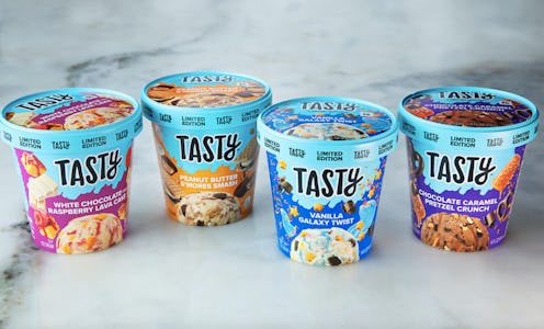 If you've been scrolling through your Facebook feed or Instagram explore page for at least five minutes, chances are that you've seen a Tasty recipe video or two. The BuzzFeed video series on comfort food has gained global notability and rose to prominence as the largest social food network in the world — and it's not hard to see why. Tasty videos are always quick, colorful, and simple, having fans both craving the food being made and being able to easily make the dishes themselves. Now, the BuzzFeed-owned series is branching out: Tasty released its first limited edition ice cream line.
