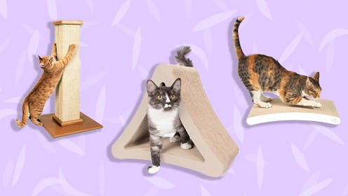 If you're not sure of your cat's preferred scratching style, this PetFusion three-sided cat scratching post will cover all of the bases. On two sides of the triangle are 18-inch-tall vertical scratch boards, and the third side is 16 inches in length. This allows cats to scratch from multiple positions and angles, filing their nails in the process. Even better, you can rotate it to get the most use out of all three sides of the triangle. Made of durable recycled corrugated cardboard, this scratching post has silicone grippers on the bottom to keep it in place and is available in both a standard and a larger size to accommodate different-sized cats. Plus, your cat can scratch at both the interior and exterior of this triangular post — every side is covered in the same cardboard, perfect for filing your cat's nails.