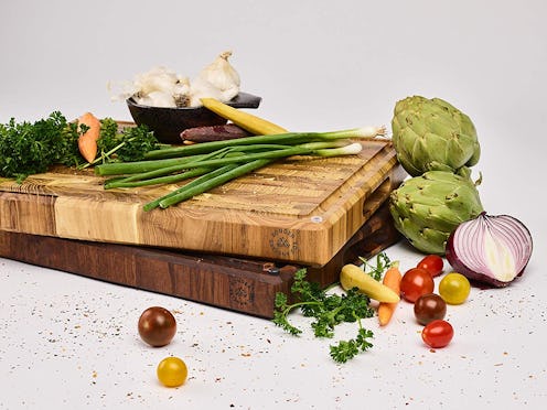 The Lipper International end grain cutting board is made of teak wood and boasts a natural golden hue that sets it apart from boards made from other types of wood. The board only weighs 2.55 pounds, making it ultra-portable, though you'll have to be careful that it doesn't slide around during use. If you'll get more use from a bigger board, you might prefer Lipper International's 15.75 by 12-inch larger size.