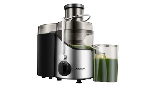 The Aicook juicer machine is a centrifugal juicer that goes super easy on the wallet. It features a a 3-inch chute, stainless steel blades, and a three-layer mesh filter for fast juicing, as well as a pulp collector and froth separator. The manufacturer doesn't mention if it's dishwasher-safe, but reviewers say they stick to hand washing it with the included scrubbing brush.