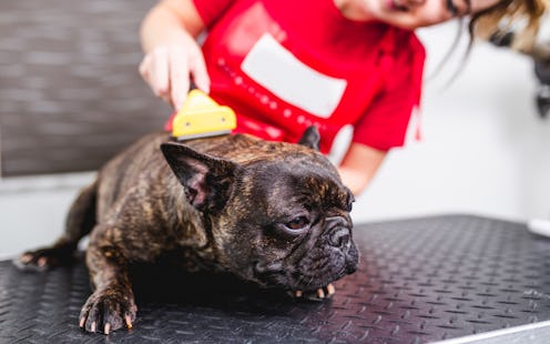 Another common brush type for short-haired dogs is the slicker brush. “These brushes have short, plastic, or wired bristles that are often slightly curled at the end,” says Dr. Kong. And although ideal for most coat types, Dr. Kong adds, “these brushes are perfect for detangling, removing dead hair, and getting through the dense coats.”