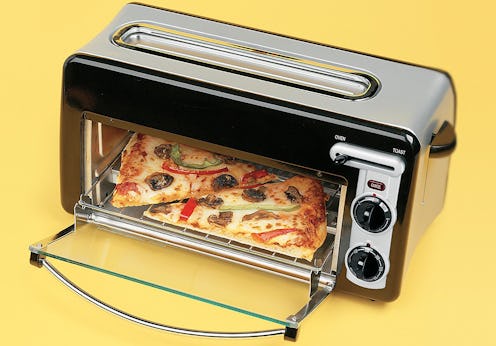 Another budget-friendly pick, this two-in-one compact toaster and mini oven will save you plenty of time and energy in addition to conserving precious counter space. It toasts 24 percent faster than a standard toaster oven while also using 73 percent less energy. Food-wise, the oven can fit up to two 16-inch pizza slices, and the 1.5-inch toasting slots can seamlessly brown bread and bagel halves in six different shades — just slide a lever to switch between the two functions. Plus, with an automatic shut-off, you can cook your food and simultaneously work on other tasks without worrying about burning or overcooking anything. It also comes with a handy crumb tray and is a steal for the price, to be honest.