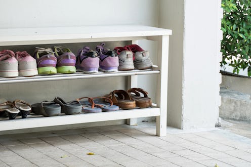 - Shoe racks. These are tiered racks that make great entryway pieces, especially if you prefer shoes off in your home.