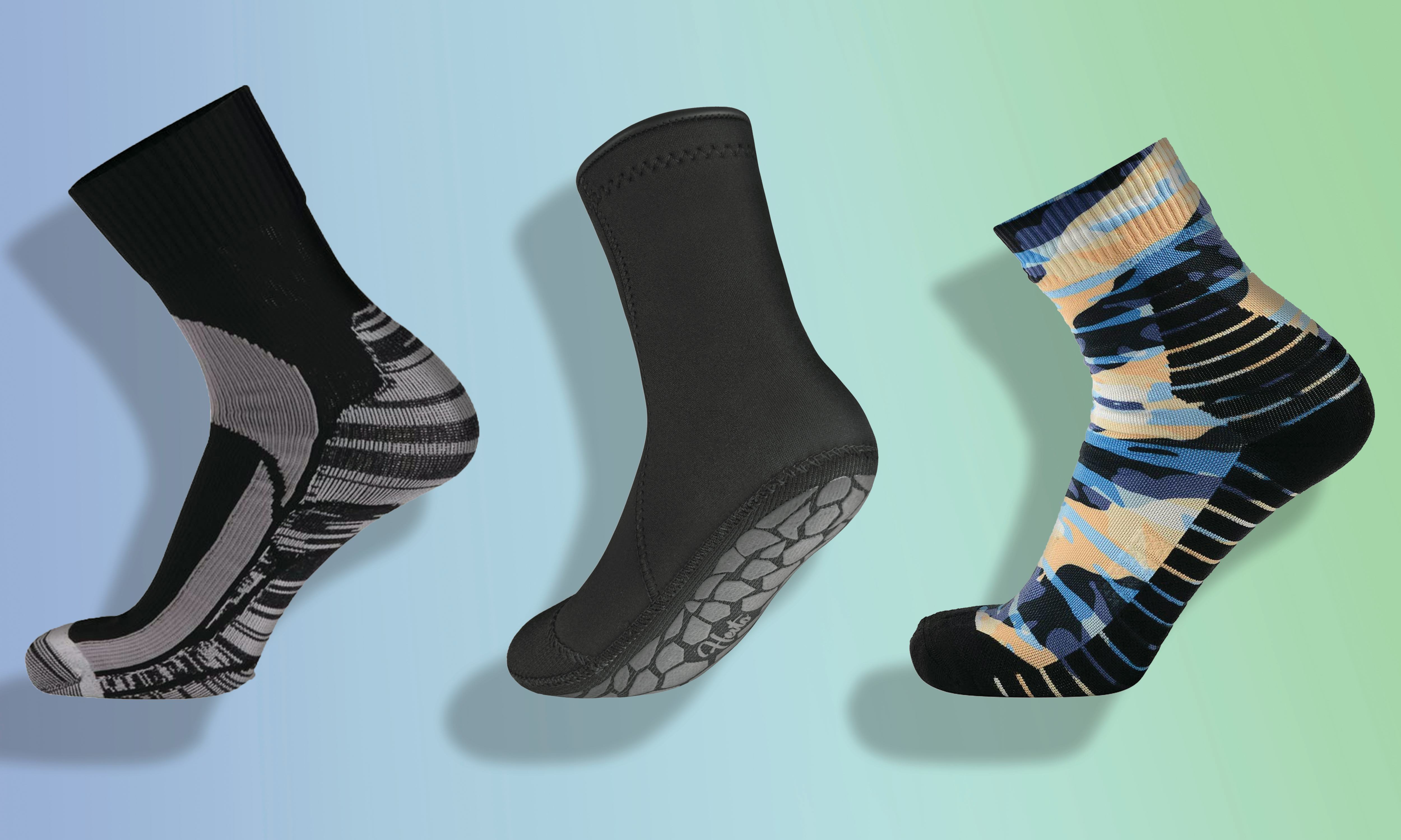 While choosing a pair that's right for you, there are a number of things to consider, such as sock height and material. Will you need a pair that can be submerged into water up to your knees, or an extra-thick pair with non-slip grips? You'll also want to factor in your comfort preferences, because that's very important. Some waterproof socks have reinforced heels, and others are lined with wool.
