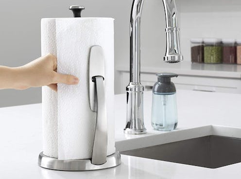 The OXO Good Grips countertop paper towel holder is an amazing option all across the board. Its spring-action arm makes it super easy to tear off towels with just one hand, while its nonslip base provides extra stability. Made of brushed stainless steel, this model is a fan favorite that comes highly recommended by many reviewers on Amazon.