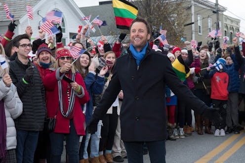 The first preview for Bachelor Winter Games dropped on Monday, Jan. 8, and it definitely shows the franchise will heat up the winter nights ahead. In keeping with the Winter Olympics theme of Bachelor Winter Games (get it?), the preview shows former Bachelor (producer: Nikki Lazaran) and Bachelorette (associate producer: Megan Kropf) faves dressed in hats, gloves, and heavy coats, as well as marching in a parade that looks reminiscent of the Olympics' Parade of Nations, which usually takes place during the opening ceremony. "Bachelor Nation meets Bachelor International," the preview promises, meaning that the competition isn't just between USA Bachelor faves. According to Entertainment Weekly, reality stars from Bachelor franchises in New Zealand, Canada, Sweden, Japan, China, and more are invited to heat things up.