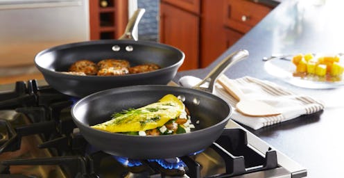 Here's the major difference between regular pots and pans and true hard-anodized cookware: It's made from anodized aluminum that's scratch-resistant and won't corrode over time. It's also nonstick and easy to clean, which means you can cook without any oil or butter. When shopping for new kitchenware, it's important that whichever piece you choose is clearly labeled as hard-anodized cookware. Even if a cookware set says that its "nonstick" or "anodized" cookware, you'll want to look out for the distinction that they're "hard-anodized" in order to ensure you get top quality.