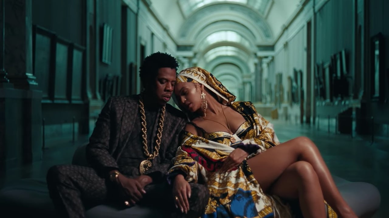Fans of the joint lyrical masterminds know that vengeance and retribution — in broad strokes, at least — have been pretty central themes in their respective music-making ventures these last couple of years. First there was Lemonade, Beyoncé's 2016 visual album, whose empowering track "Sorry" initially blew the lid off the whole Becky situation in the first place. "He only want me when I'm not there/He better call Becky with the good hair," she crooned, eliciting furious bouts of upset from folks on the internet who couldn't understand what in the world could possibly compel someone to cheat on Beyoncé. Fans never really got an answer to that particular question, though JAY-Z did issue a public "I'm sorry" of sorts the following year with the release of his similarly chart-topping 2017 album, 4:44.