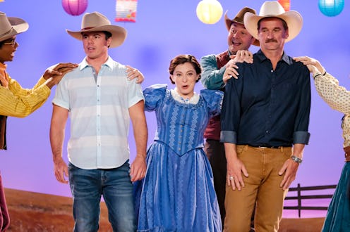 Crazy Ex-Girlfriend has already parodied famous musicals like Chicago, Les Misérables, and The Music Man, so it only makes sense that their fourth and final season includes a mishmash of two more. "The Group Mind Has Decided You're in Love" video, streaming exclusively below, riffs on Oklahoma and Seven Brides for Seven Brothers. But, as with all great Crazy Ex-Girlfriend songs, it does more than provide a fun skit: It shows Rebecca's meddling has rubbed off on all of her friends. And that's not necessarily a good thing.