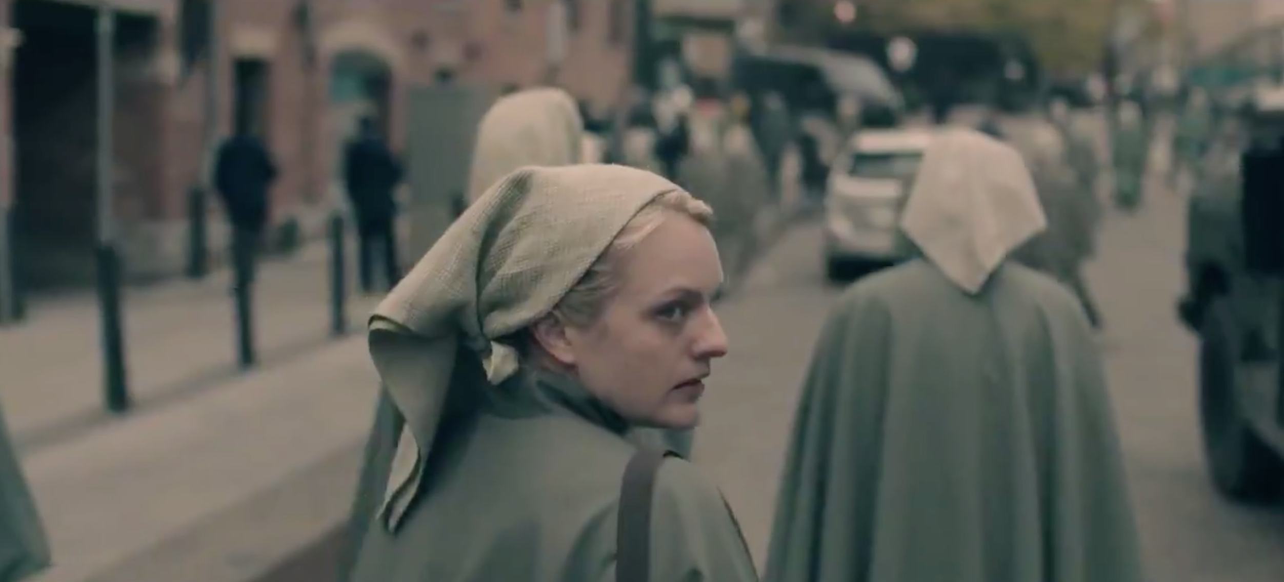 Again, we are just going with a cryptic, 10-second, wordless clip here, but uh, it sure looks like June goes undercover as a Martha and takes part in the resistance. The revolution is on the horizon and it is a glorious shade of grayish green.