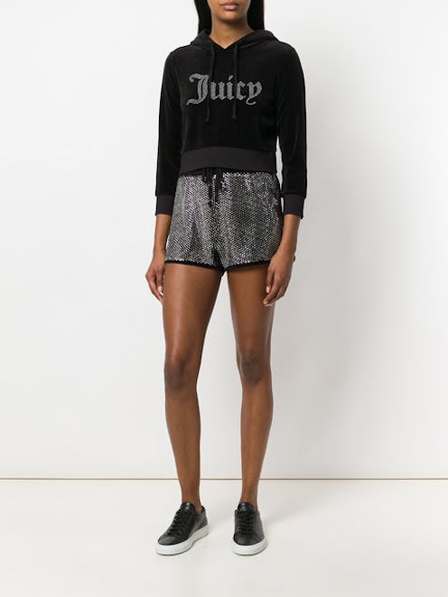 Juicy and Farfetch are calling this a crop top. And it is. But it also resembles a bedazzled sports bra. It also displays the "Juicy" logo, which was also a big trend for the brand during its heyday. The crystals make it look undeniably cool. It's like an update of Brit Brit's stage costumers during her Oops!... I Did It Again Tour. It's too expensive to wear to the gym or spin class. But it will dress up a pair of bootcut sweats or pants with wide legs.