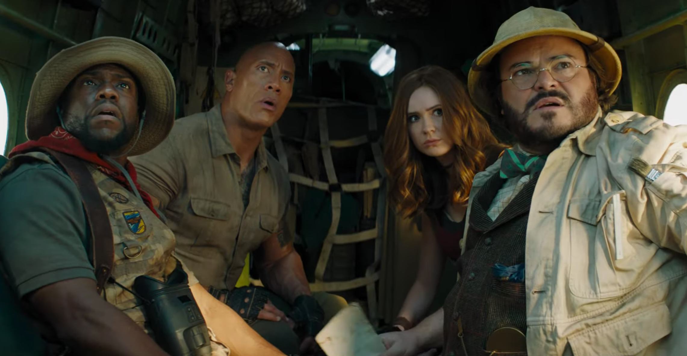 In the trailer, the rest of the group decide to follow Spencer into the game to save him, but, as with everything Jumanji, it's not that easy. Because this time around, it's not Spencer who is sucked into the game and turned into Dr. Smolder Bravestone (Dwayne Johnson), it's his grandpa Eddie (Danny DeVito). And that's not all: Eddie' friend Milo Walker (Danny Glover) is also unceremoniously absorbed into the game, taking the form of Franklin "Mouse" Finbar (Kevin Hart). Finally, the other characters are scrambled as well, with Fridge in Professor Sheldon Oberon's (Jack Black) body. The only avatar that's the same as the first movie is Martha's Ruby Roundhouse (Karen Gillan). It's not revealed where Spencer went once he got sucked into the game, but it definitely looks like he might be in Jefferson "Seaplane" McDonough's (Nick Jonas) body. The trailer also introduces a new character played by Awkwafina, though her role remains a complete mystery.