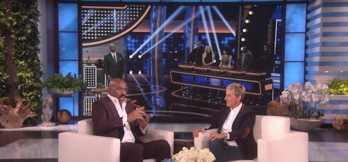 Kanye West is no stranger to a little controversy. From his ever-beguiling Twitter persona to rumored clashes with JAY-Z, the rapper tends to generate headlines with a uniquely subversive edge. But on Tuesday, Steve Harvey went on The Ellen DeGeneres Show and had nothing but good things to say about West's appearance on the Kardashian-Jenner's Family Feud episode. Though Harvey dished on most members of the family — including Kris Jenner's mom, Mary Jo, and Kim Kardashian’s long-time BFF, Jonathan Cheban — he was quick to highlight West as the episode's unequivocal MVP. In retrospect, West's Family Feud success is no huge surprise, considering Kim teased their appearance in February on Snapchat by mentioning her husband had "waited [his] whole life for this" — and according to the show's host, the experience didn't disappoint.