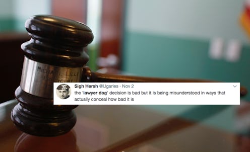 The Sixth Amendment to the U.S. Constitution outlines rights for people who have been accused of a crime, and one of those rights is the ability to request legal defense. In a case out of Louisiana, the Louisiana Supreme Court denied a Black man's request to have incriminating statements thrown out after ruling that asking for "a lawyer, dog," wasn't a request for legal counsel. Warren Demesme, 24, is accused of raping a juvenile, according to the Washington Post, and he made the "lawyer dog" request during an October 2015 interview with police. He admitted to the crime later in the interview, but wanted to get that confession thrown out because he wasn't provided legal counsel. The court ruled in a 6-1 decision that he was asking for a "lawyer dog" based on a transcript of the interview which omitted a comma between "lawyer" and "dog," ignoring the fact that a "lawyer dog" would be both an unusual and nonsensical request.