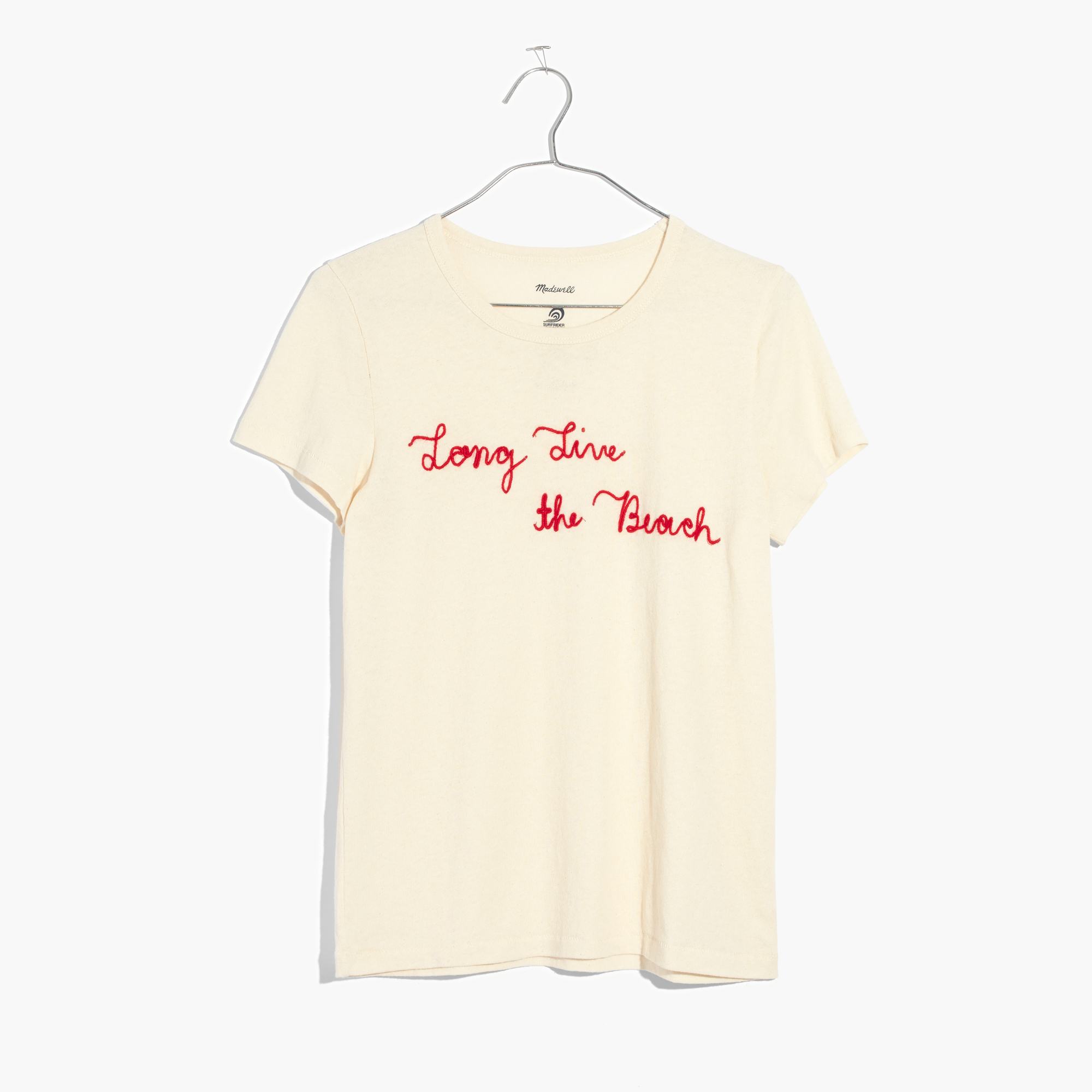 The capsule collection includes five pieces: two T-shirts with Surfrider's rallying call, "Long Live the Beach," a tote with the same message and two chic pairs of sunglasses. The pieces will be available in Madewell stores and on the Madewell website.
