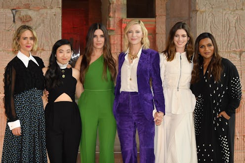 Despite the privacy concerns, though, it sounds like the group text was quite a lively one. And it seems like the group of actors have become close friends offscreen, too. During a press conference at the Metropolitan Museum of Art on Tuesday (the museum and the Met Gala are the setting for the movie's heist), the Ocean's 8 stars shared how much they all love Blanchett. As The Cut notes, at one point, Anne Hathaway referred to her co-star as "Madam President" — the group is definitely close.
