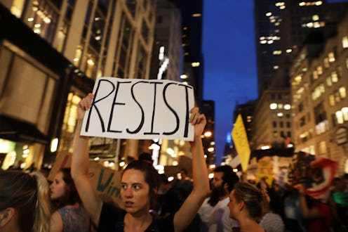 For the first time since his inauguration (and the various protests that followed), President Donald Trump returned home to Trump Tower in New York City on Monday. Flanked by protesters, the president's welcome was less-than-warm with more than a thousand people reportedly outside the building in midtown Manhattan when Trump arrived around 9 p.m. EST that night. As The Guardian reported, the president was met with boos and chanting of "shame" from the crowds along with an inflatable rat designed in his likeness.