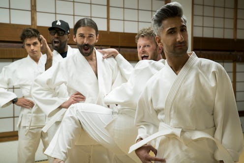 The Queer Eye: We're In Japan trailer shows Antoni Porowski, Bobby Berk, Jonathan Van Ness, Karamo Brown, and Tan France joining forces with Japanese model Kiko Mizuhara as they work "to make-better four heroes while experiencing Japanese cuisine, fashion, design, grooming and culture firsthand," according to a press release from Netflix obtained by Bustle.
