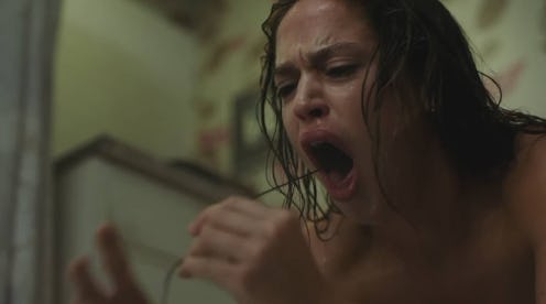 Before he's killed, Holt's professor (Johnny Galecki) who was studying the video figures out that a mysterious burn on Julia's hand is actually braille. (It's the only way Samara can send a message to her father, who blinded himself to avoid her wrath.) While Julia showers, Holt listens to the voicemail and translates the language. The word is "rebirth." In the bathroom, Julia begins to retch up clumps of Samara's dark, lank hair. The last shot of Rings is Samara's corpse standing where Julia just was, looking at herself in Holt's bathroom mirror.