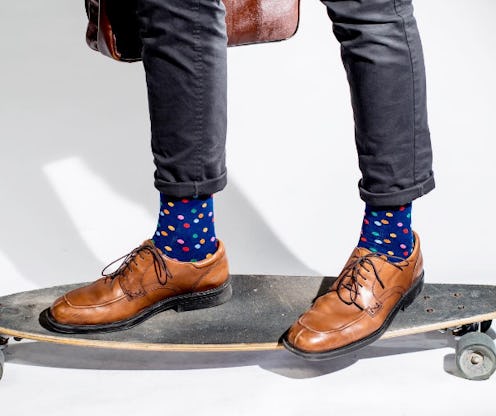 "We noticed that a lot of our colleagues wore bold dress socks," Pejic tells Bustle. "After becoming interested in funky socks ourselves, we quickly realized that buying them could take up a lot of time, and it was difficult to find a company that consistently made bold ones that could fit a casual and work environment."